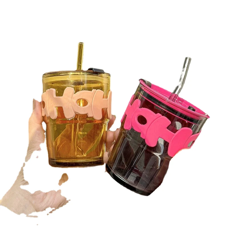 Linuo, высококачественный стеклянный стакан для письма с покрытой соломой, офисный домашний кофе