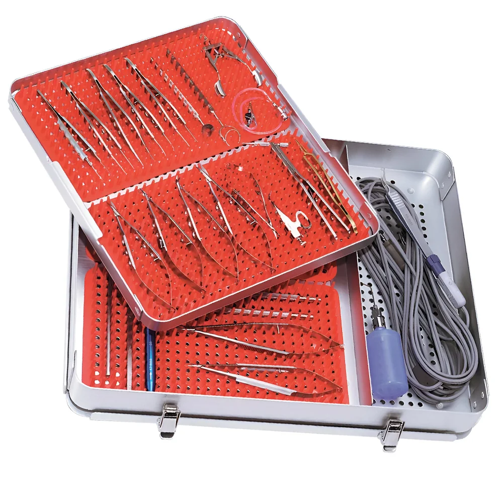 Новый набор офтальмологических хирургических инструментов из нержавеющей стали для катаракты глаз с лотком стерилизации