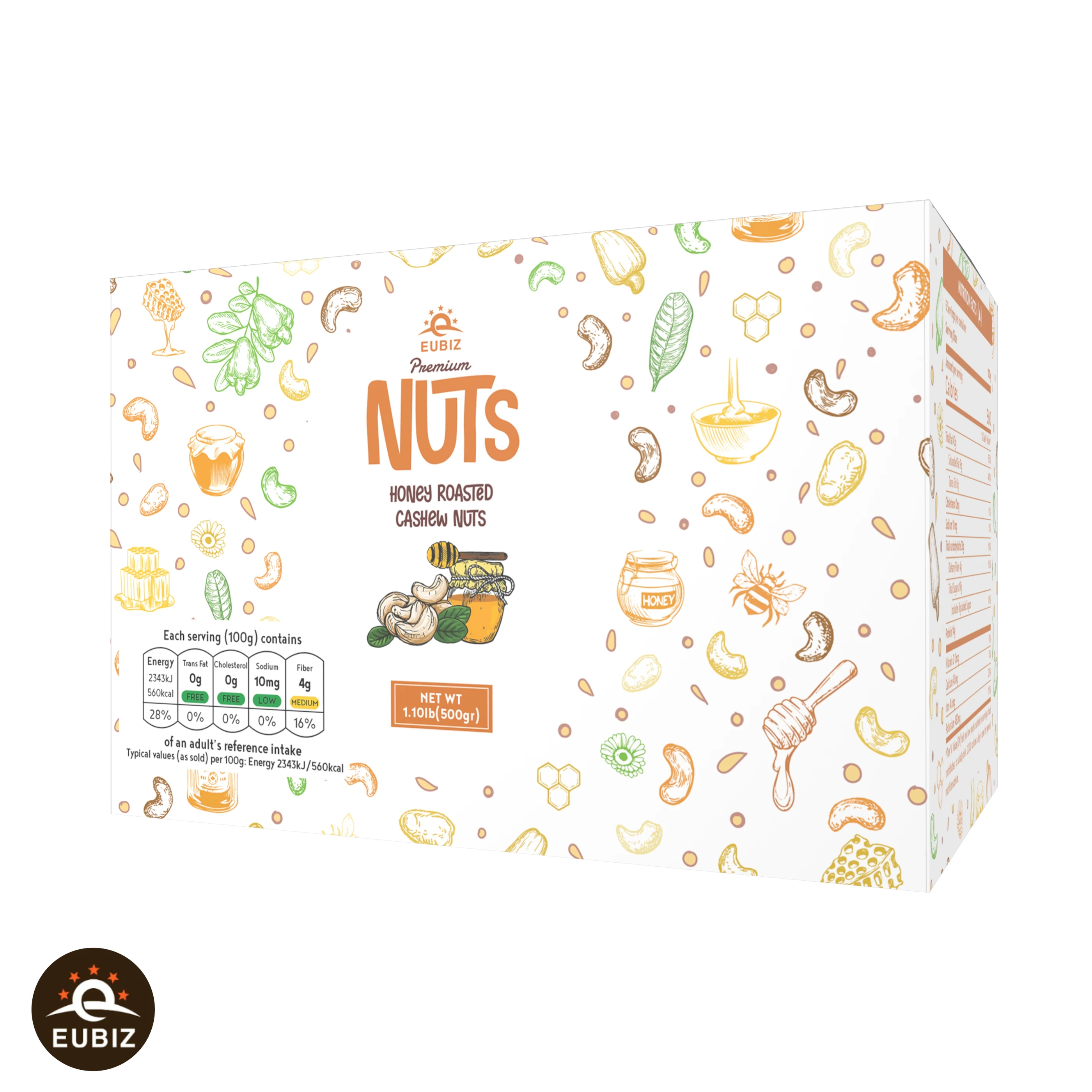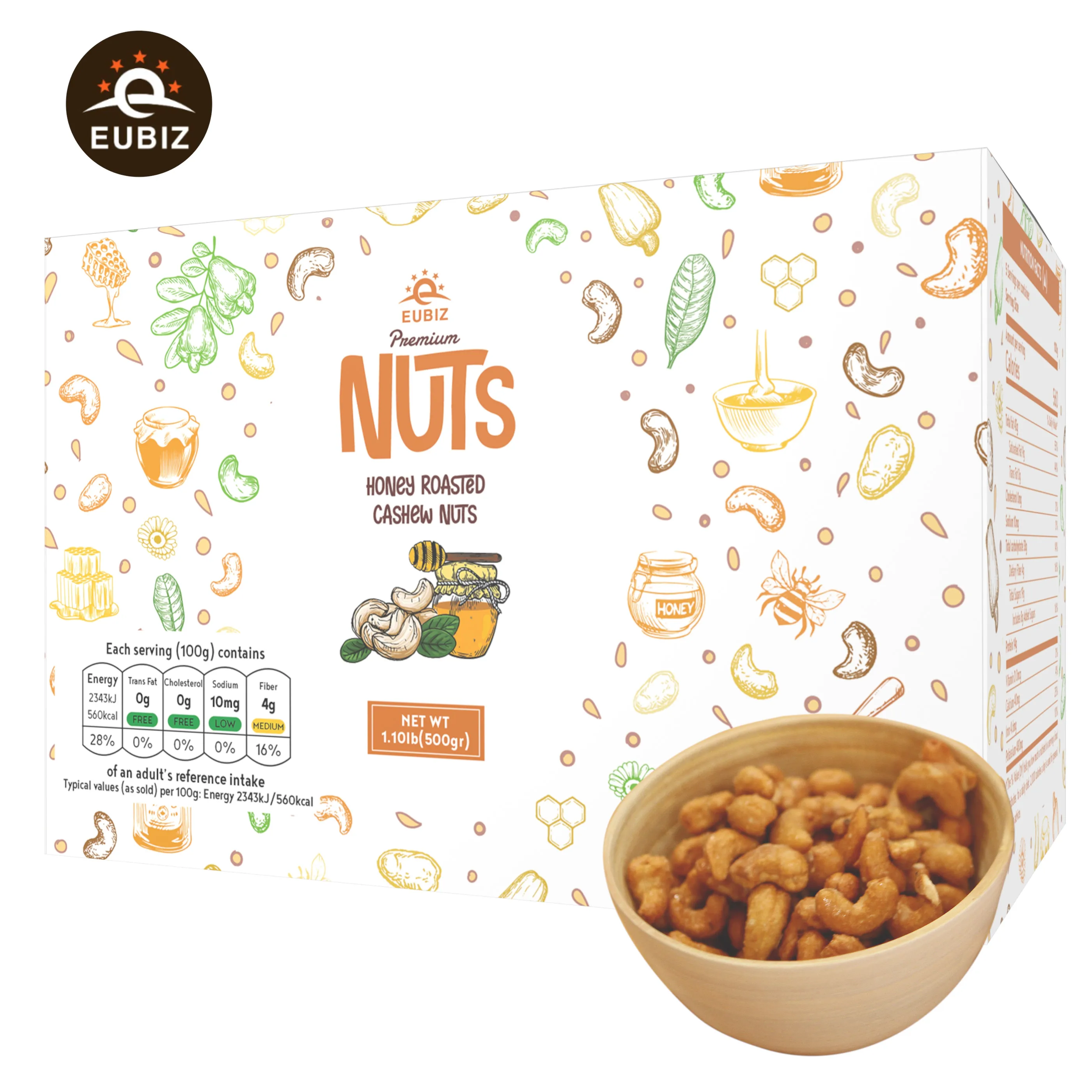 EUBIZ CASHEW - Flavors to go nuts for Cashews Salted Roasted, Honey Roasted Cashews, Cashew Nuts with CaCao, Cashew Nuts with Coconut Milk. These premium whole cashews provide a healthy Snack and deliver an exceptional taste.