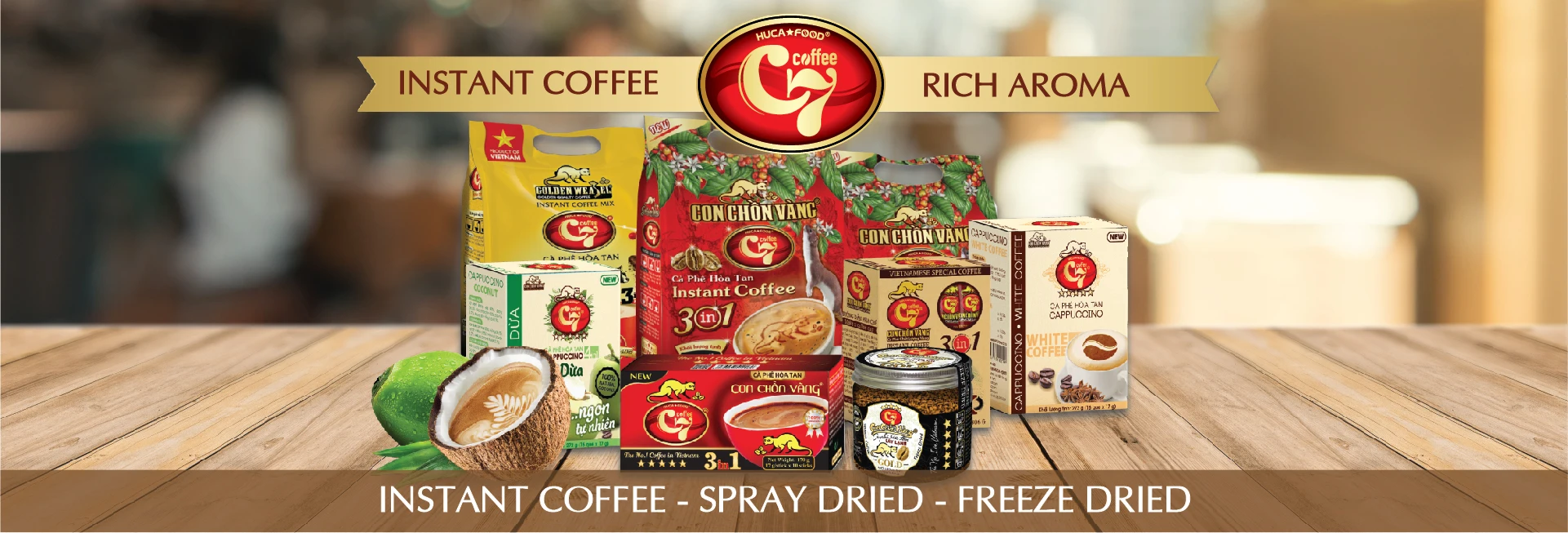 HUCAFOOD PRODUCTION – TRADING CO., LTD is now specializing in manufacturing and trading of Coffee products, from roast/grind Coffee with original taste, instant Coffee for modern lifestyle to Weasel Coffee in luxurious quality and special flavor, Pure Cocoa, instant Cocoa products. Especially designing and manufacturing for customer require.