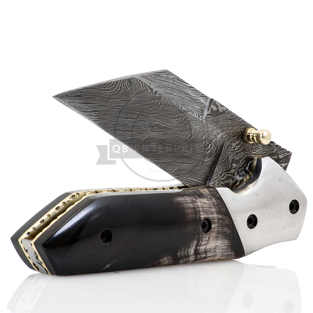 Ручной работы по индивидуальному заказу премиум качества нож из дамасской стали Кемпинг Складной нож с кожаной оболочки QB-20-H10190