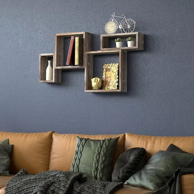 Деревянные полки для украшения гостиной