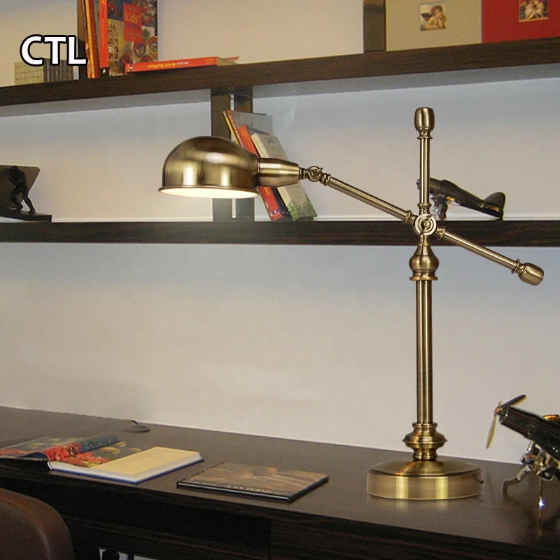 Офисная прикроватная бронзовая металлическая настольная лампа, дешевая Регулируемая Современная Золотая Настольная лампа с углом наклона для отеля