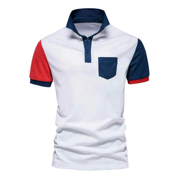 Мужская хлопковая рубашка-поло с отложным воротником и коротким рукавом