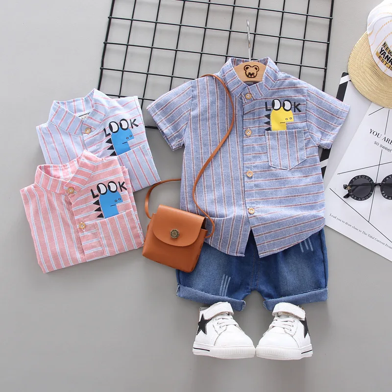 Летняя Детская рубашка из 2 предметов, джинсовые шорты, мультяшный милый костюм для малышей, детский ковбойский костюм, детская одежда для мальчиков и девочек, комплекты детской одежды