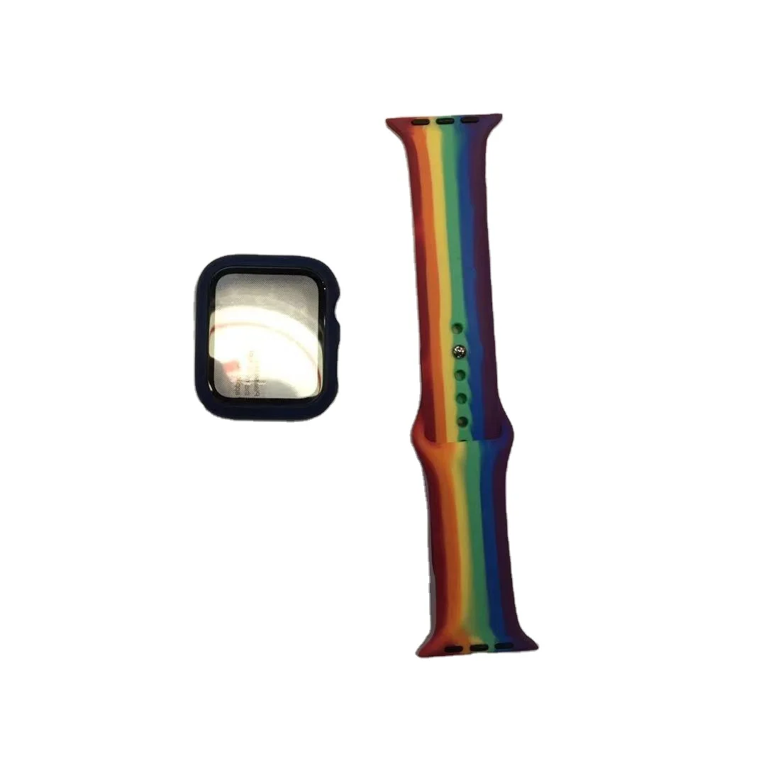 Радужный спортивный резиновый ремешок для Apple Watch 5 4 3 2 1, размер 44 42 40 38 мм