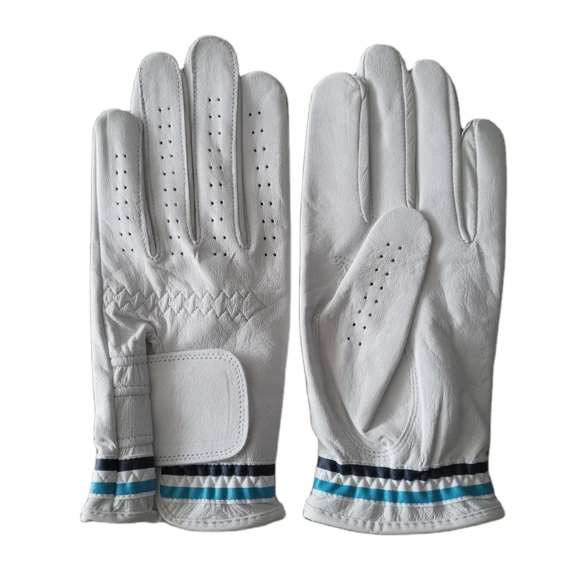 Лидер продаж новые мягкие полноцветные кожаные перчатки для гольфа в полоску из Индонезии Cabretta с полосками левой руки