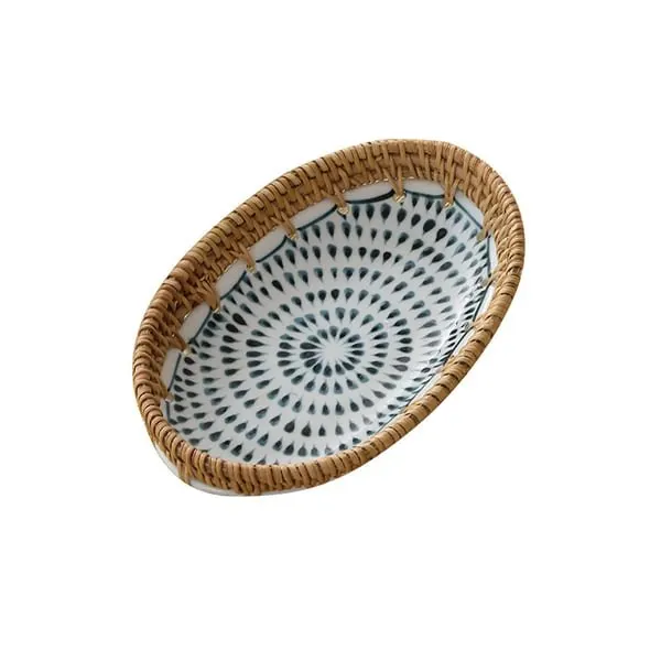 Набор керамических тарелок из ротанга и керамики