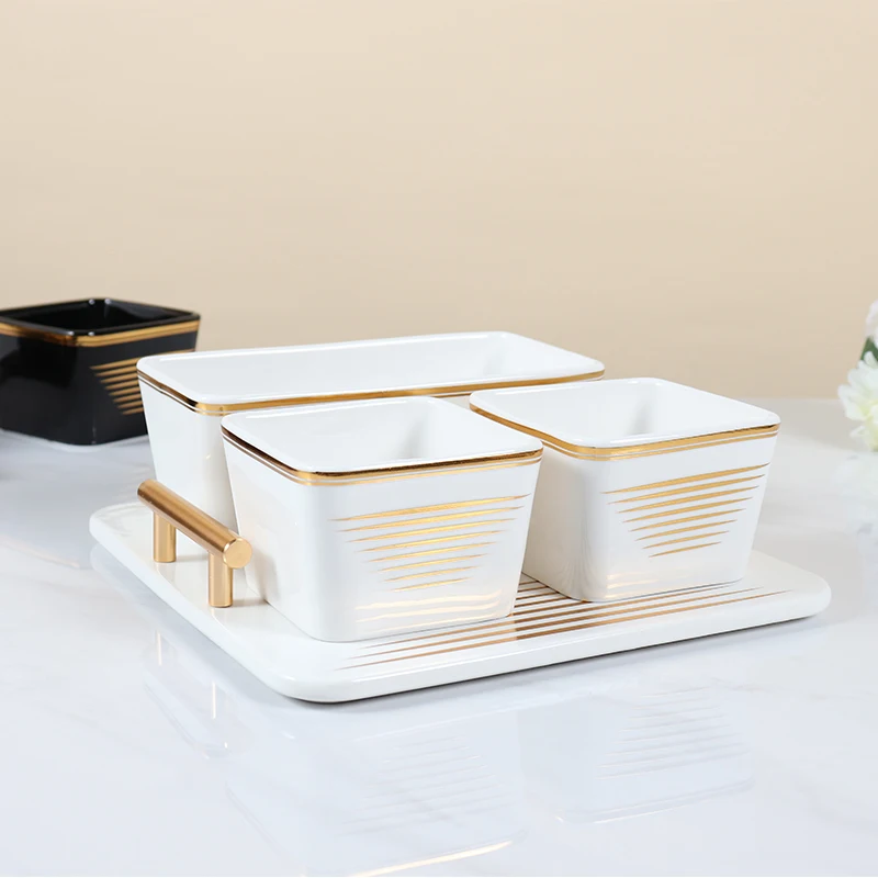 Лидер продаж, керамическая сервировочная посуда для закусок, набор сервировочных чашек с подносом для отеля