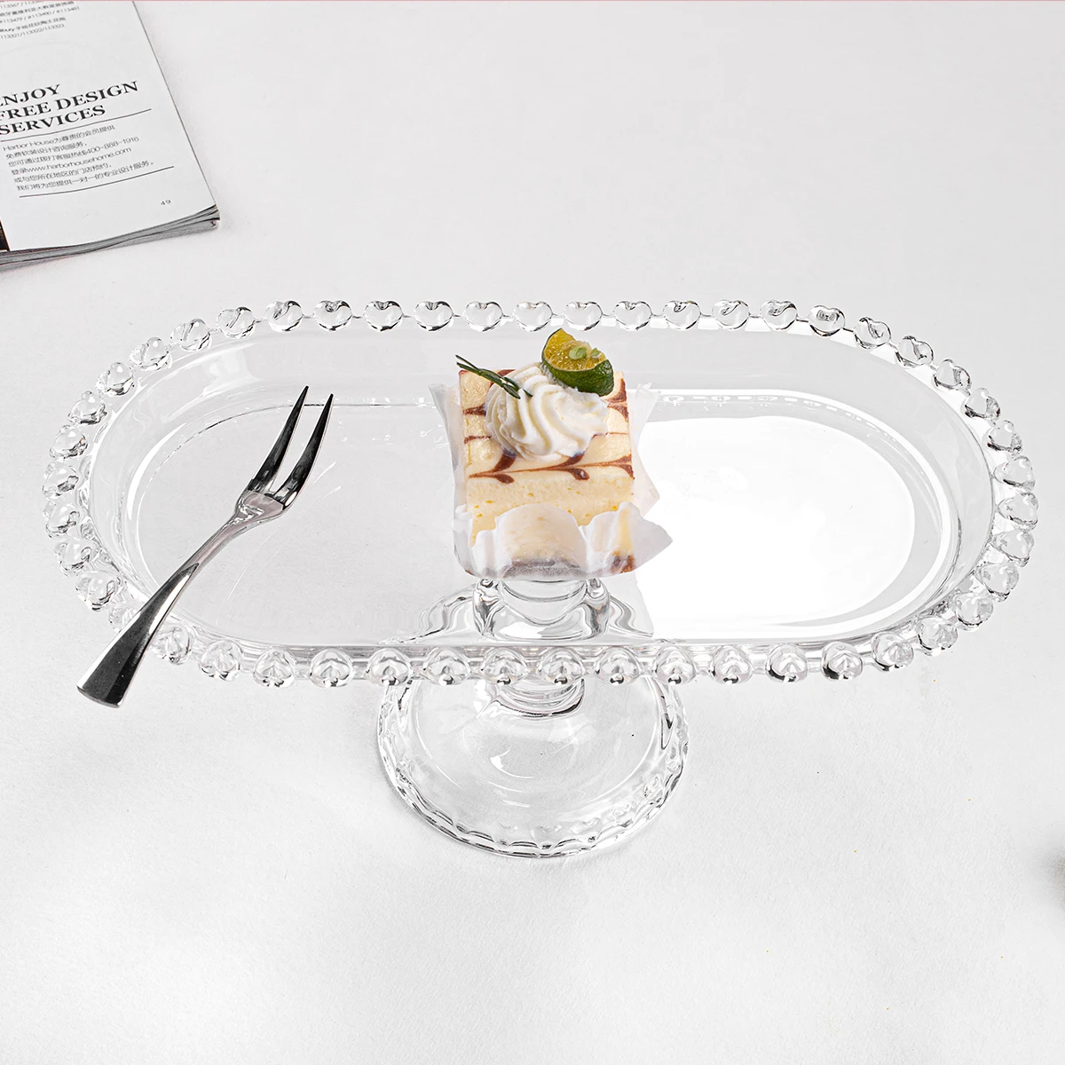 Хит продаж, стеклянная тарелка с бусинами для торта, десерта, подставка для тортов и фруктов, стеклянная тарелка, поднос для еды для ресторана