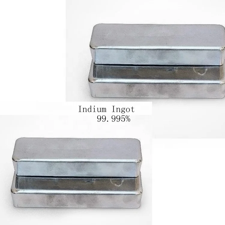 In-05 Grade 99.999. The content of Indium is above 99.999%. The total content of Ag, Al, As, Cd, Cu, Fe, Mg, Ni, Pb, S, Si, Sn, Tl, & Zn is bellow 10 ppm;
