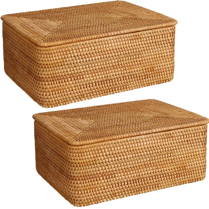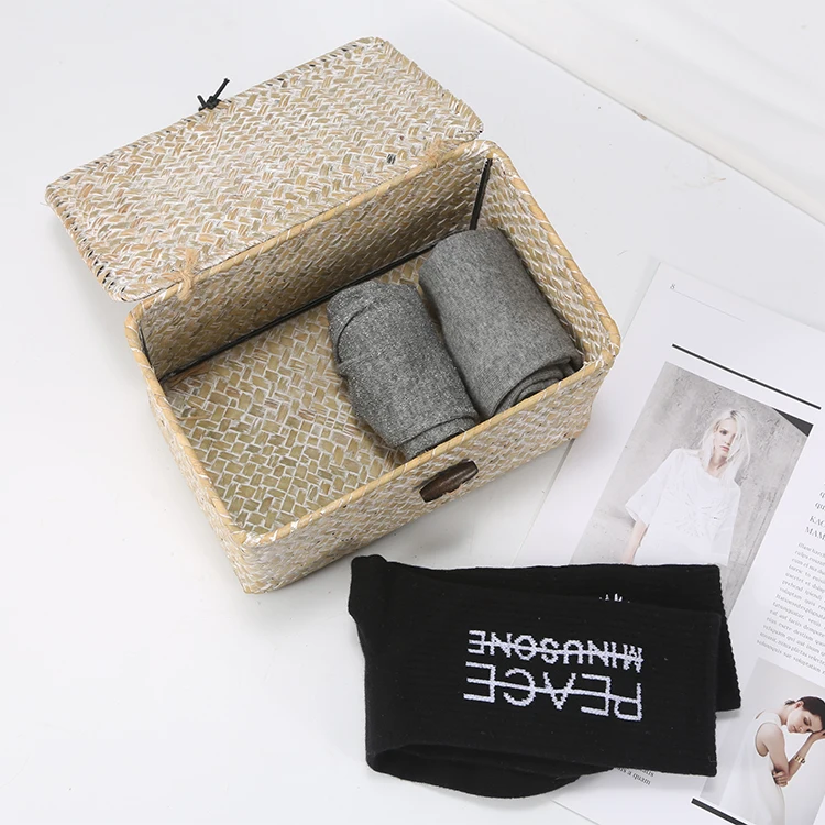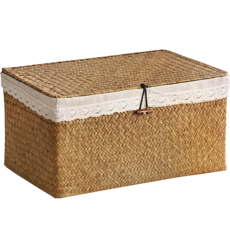 Плетеная шкатулка ручной работы с крышкой, плетеный органайзер для косметики, контейнер для еды, коробочка для хранения морских водорослей