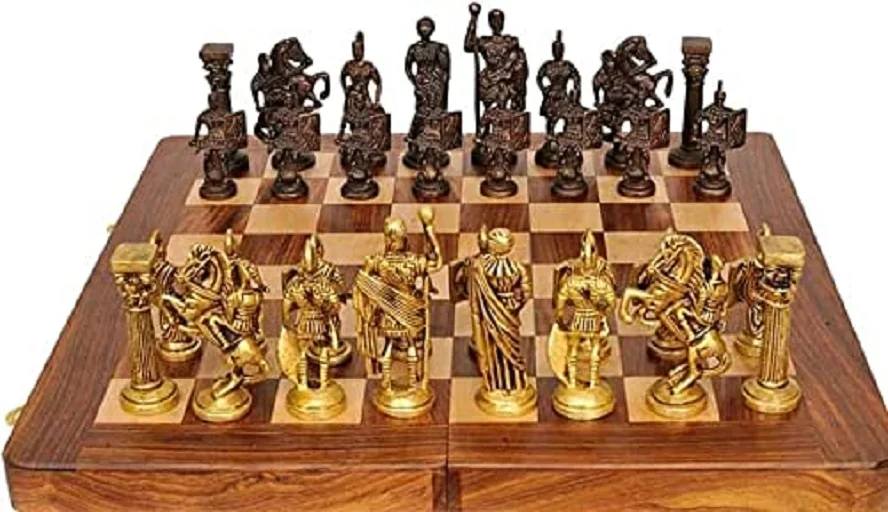 These wonderful set of chessmen are handcrafted by our expert craftsmen in India. It is made by Brass