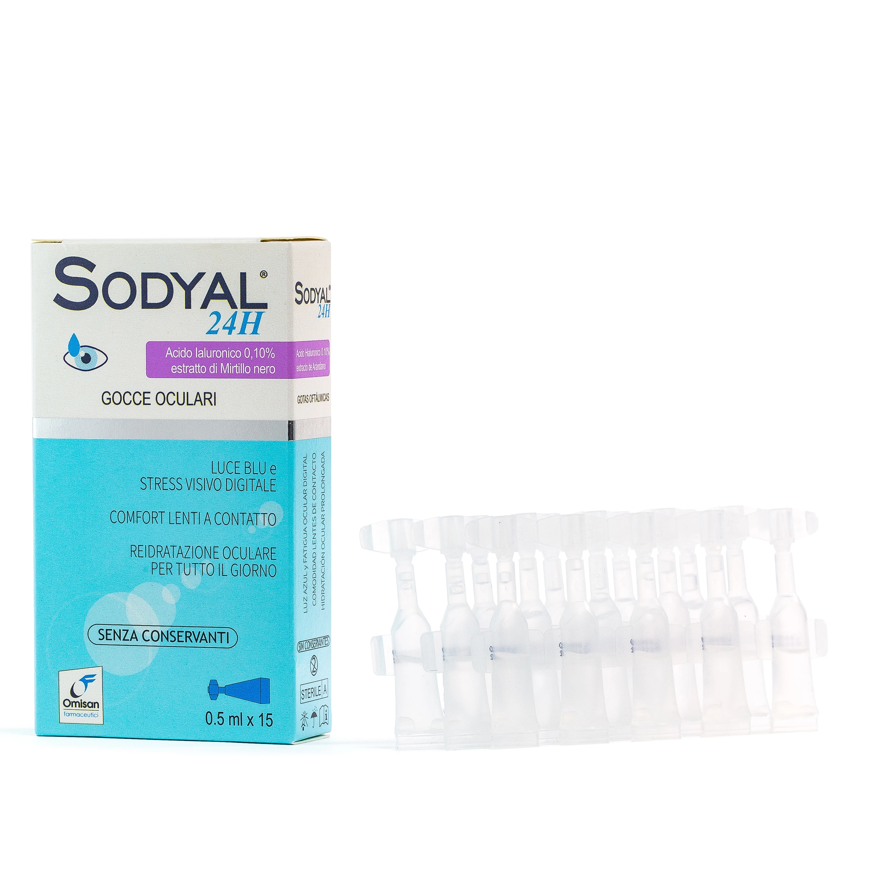 Ежедневная смазка Sodyal 24 часа (0,5 мл, 15 флаконов в одной дозе) и повторное увлажнение сухих глаз стабилизируют и восстанавливают слезоточивую пленку