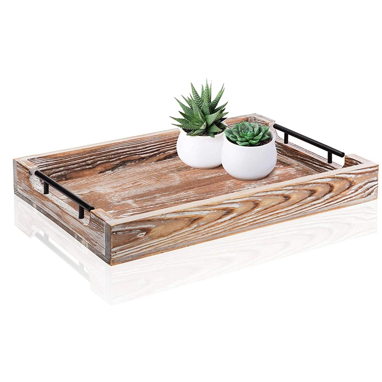 Оптовая продажа, декоративные деревянные поддоны для дома в стиле ретро с ручками, поднос для журнального столика