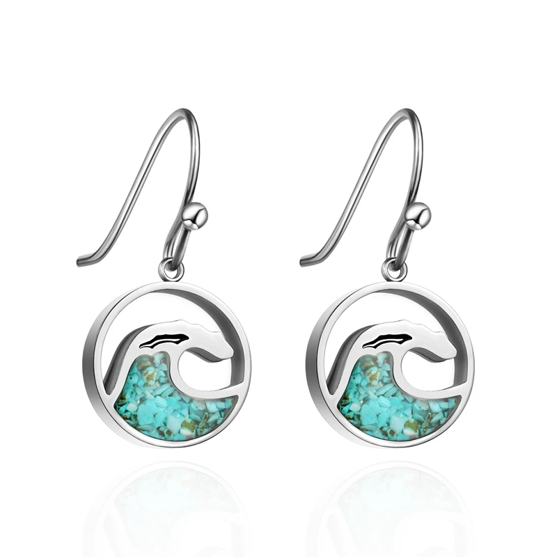 Новый дизайн из нержавеющей стали полые круглые волны кулон серьги заполнены Зеленый Бирюзовый Чип Серьги