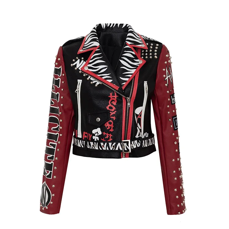 Женская куртка в стиле панк, мотоциклетная куртка большого размера с графическим принтом, осень 2021