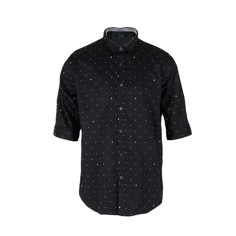 Профессиональное производство на заказ, летняя повседневная простая черная рубашка с коротким рукавом и принтом для мужчин