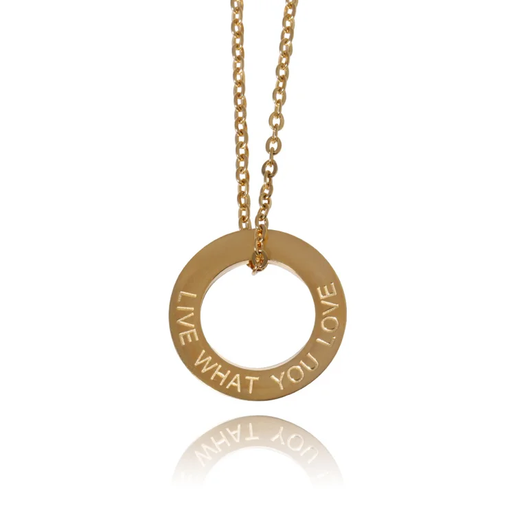 Fashion jewelry Custom 18k gold plated stainless steel engraved word washer pendant