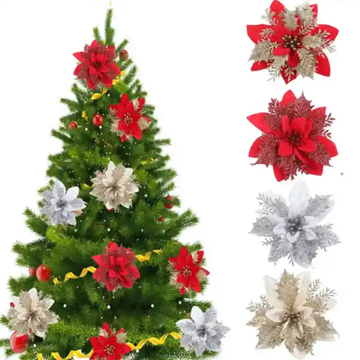 Пуансеттия цветок Искусственные блестки пуансеттия Рождественская елка украшения Рождественский венок праздничное украшение для дома и вечеринки