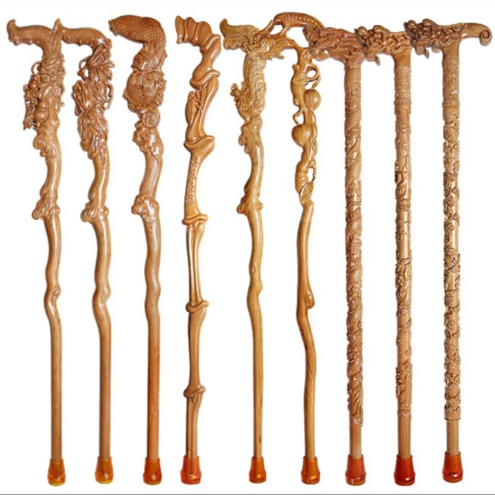 Домашняя пожилая китайская тарелка из красного дерева, резьба по дереву, многофункциональная деревянная палка для ходьбы, трость для пожилых людей