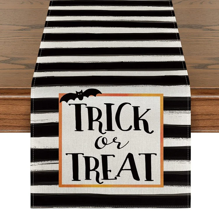На заказ Happy Halloween трюк или угощение черная полоса оранжевая клетчатая Тыква с принтом льняной кухонный обеденный стол бегун оптом