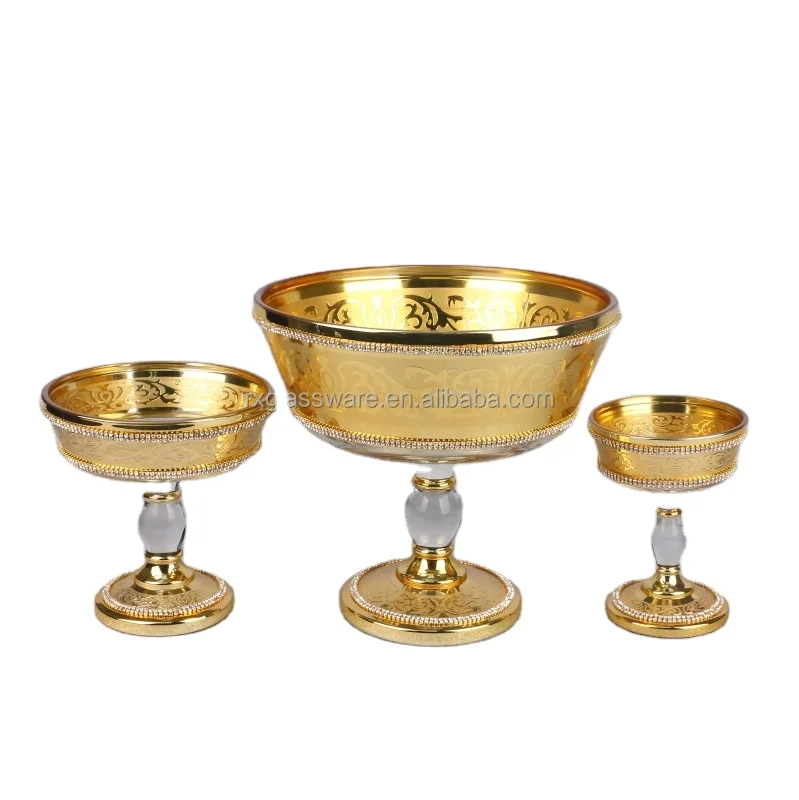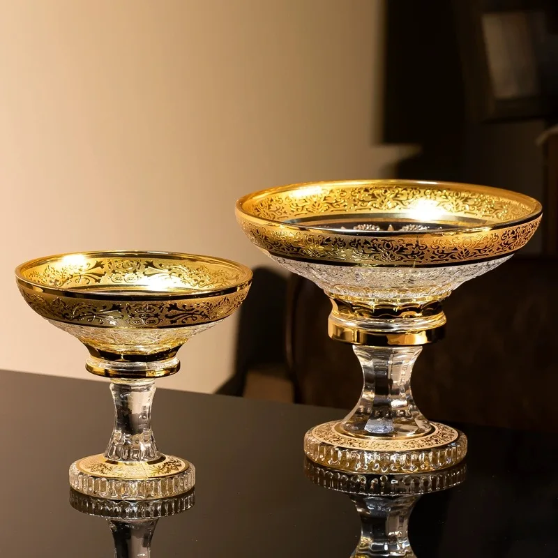Стеклянная Чаша для фруктов Footed с золотым украшением роскошная Золотая декоративная картина предметы дома подарок