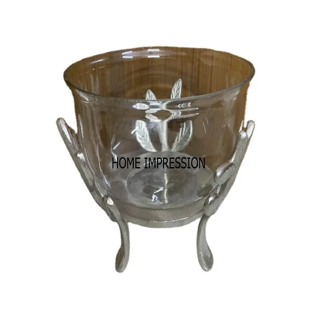 Стеклянная декоративная чаша с серебряной основой