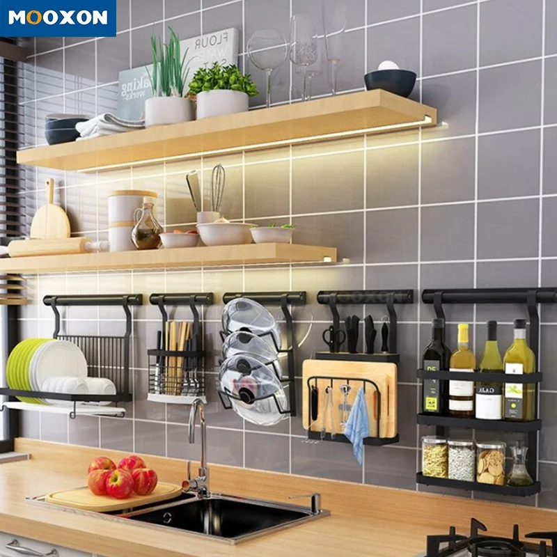 Кухонная полка для специй, тарелка для мытья посуды, держатель ножа, разделочная доска, органайзер, крышка для кастрюли, настенная стойка для хранения