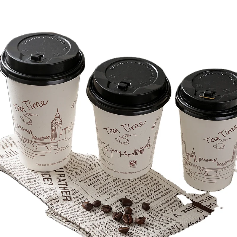 Экологичный подстаканник для стаканов одноразовые кофейные чашки индивидуальный логотип печать одна стена 12 унций бумажные чашки с крышками
