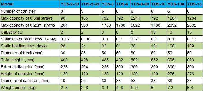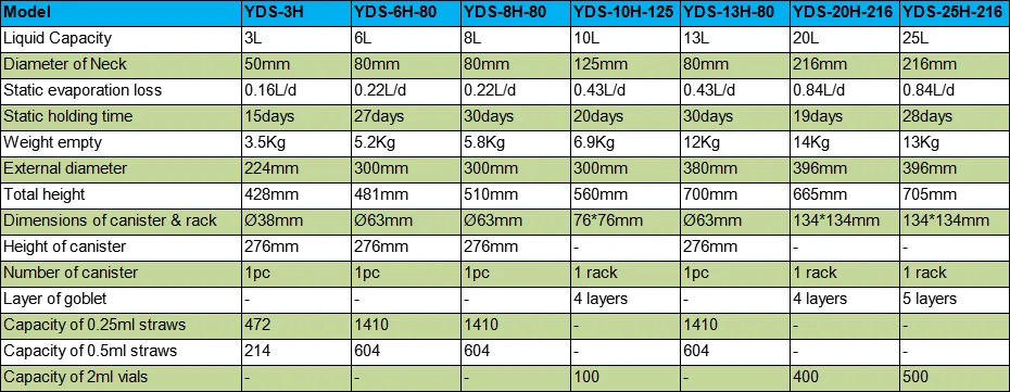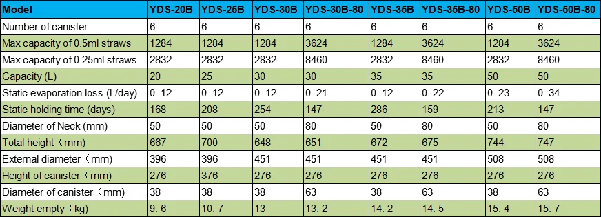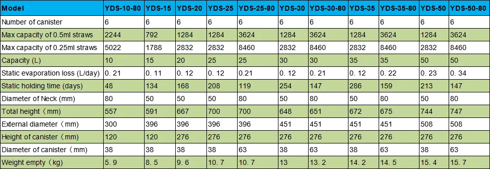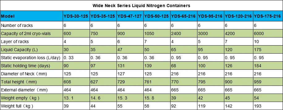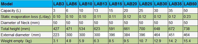 2L to 175L Liquid Nitrogen Containers Series: | ||||||||