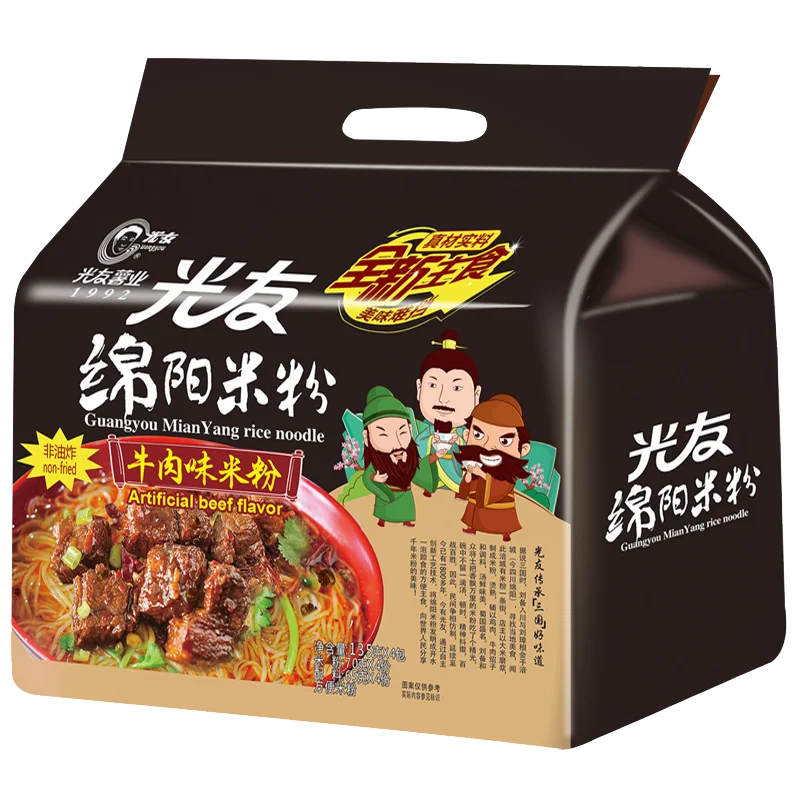 Оптовая продажа мгновенный вермичелли Семейный пакет (135 г * 4 сумки) Говядина не жареная здоровая еда рисовая лапша быстрого приготовления
