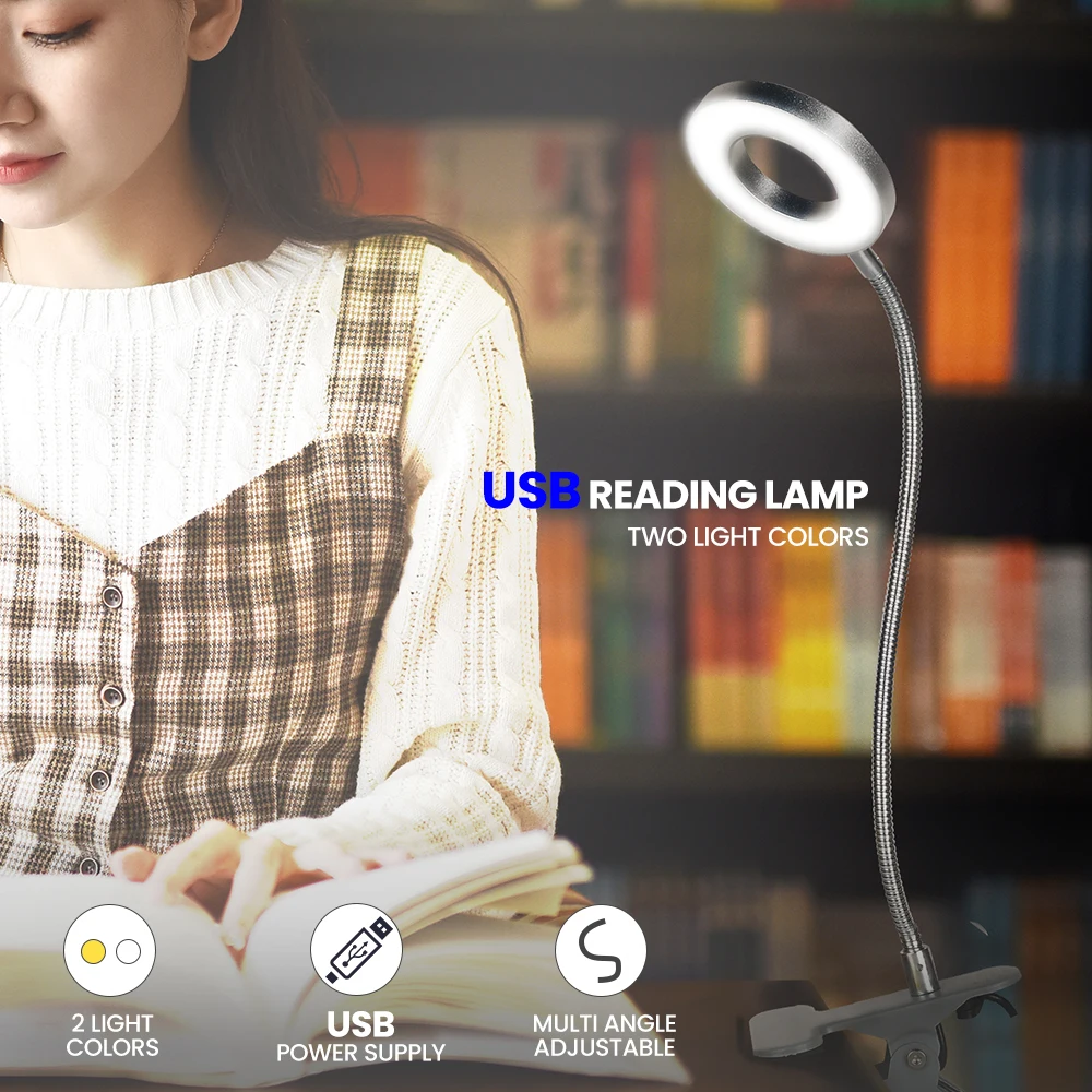 Новый гибкий зажим для защиты глаз на гусином шее, лампа с зажимом для книги, белый/теплый белый свет, USB-зажим, 7 Вт, светодиодная настольная лампа для чтения, ночник
