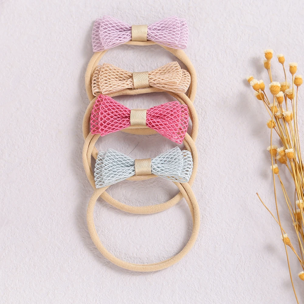 Новейший дизайн повязки для волос с бантом детская нейлоновая повязка для волос нейлоновая эластичная тонкая повязка для волос для новорожденных Кружевная повязка для волос с бантом