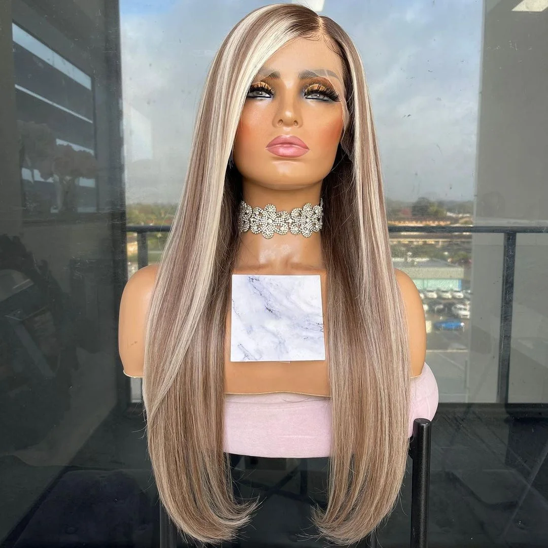 Натуральные Прямые Человеческие Волосы Класса 12А, ясень, блонд, необработанные волосы, фронтальные парики для женщин