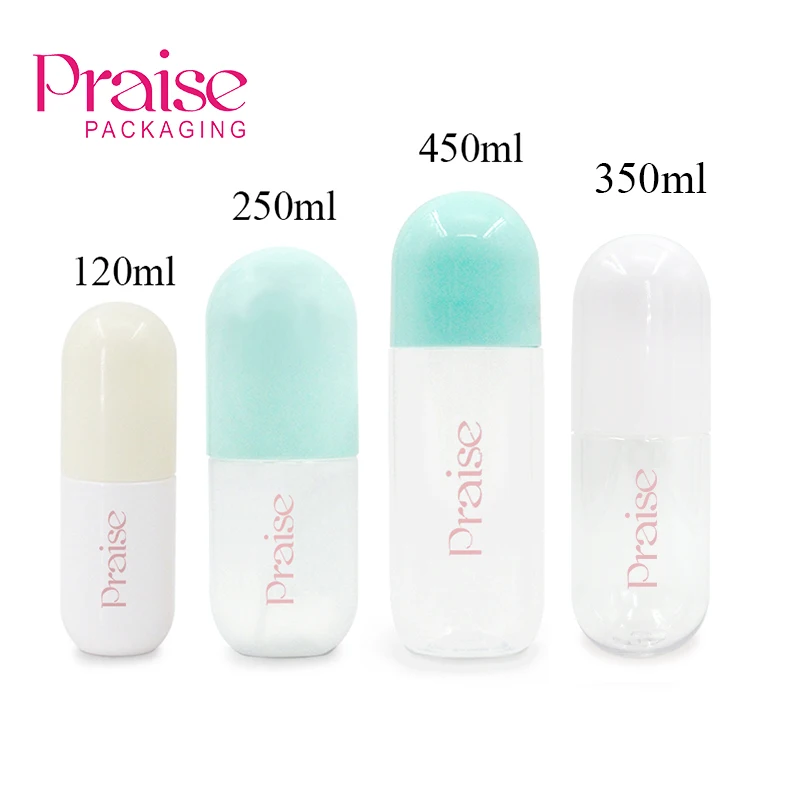 Пластиковая упаковка из ПЭТ для ухода за кожей, косметическая пустая бутылка для тонера и лосьона в форме капсулы 120/250/350/450 мл, производитель на заказ