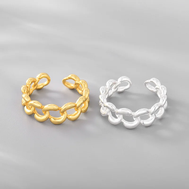 Никогда не увядает чистого серебра полый Круг Звено Цепи позолоченное кольцо, 18K, настоящая позолота S925 цепи кольца для девушки, модное ювелирное изделие