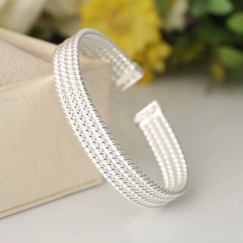 Модные милые женские ювелирные изделия из чистого серебра 990 спиральный провод браслет Открытый 4 ряда узор в виде косички