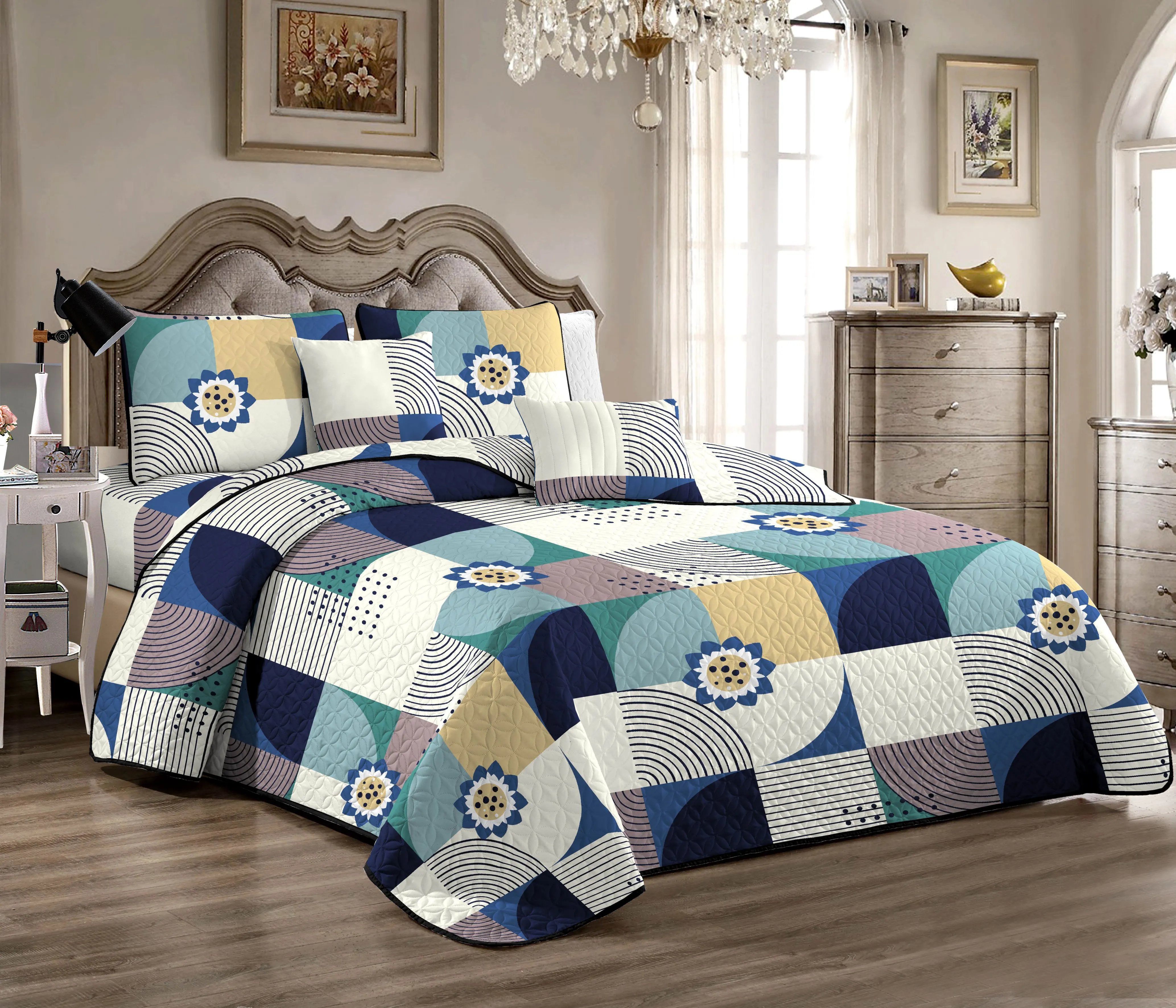 Aoyatex Печатных Лоскутное покрывало нового дизайна, 5 шт./набор, индивидуальный дизайн хлопок/поли-наполнитель печать одеяло