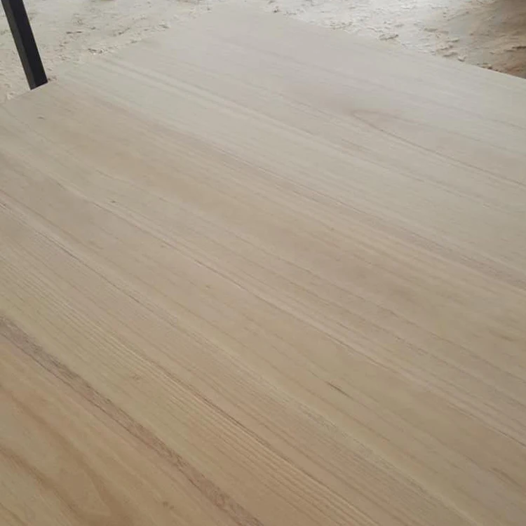 Glued of solid wood. Colour and grain for each panel are handpicked. Interlocking and spiral grain.