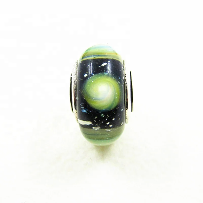 Оптовая продажа с завода, бусины из муранского стекла для изготовления браслетов, зеленый Млечный путь, галактика