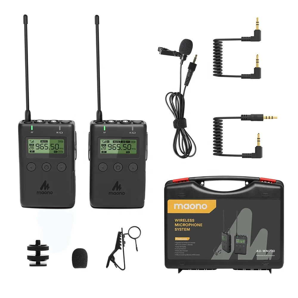 Профессиональная Беспроводная микрофонная система MAONO, петличный микрофон 48 дюймов Trannel UHF для проведения интервью, записи видео на YouTube