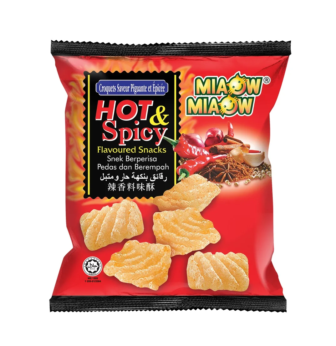 Низкий минимальный заказ поставщик закусок Miaow горячие и острые крекеры закуска с упаковкой в пакеты 10 г сделано