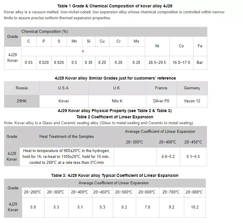 Item | 1J33 | 3J01 | 3J9 | 4J29 | 4J32 | 4J33 | 4J45 | FeNi50 | Invar36 | ||||||||