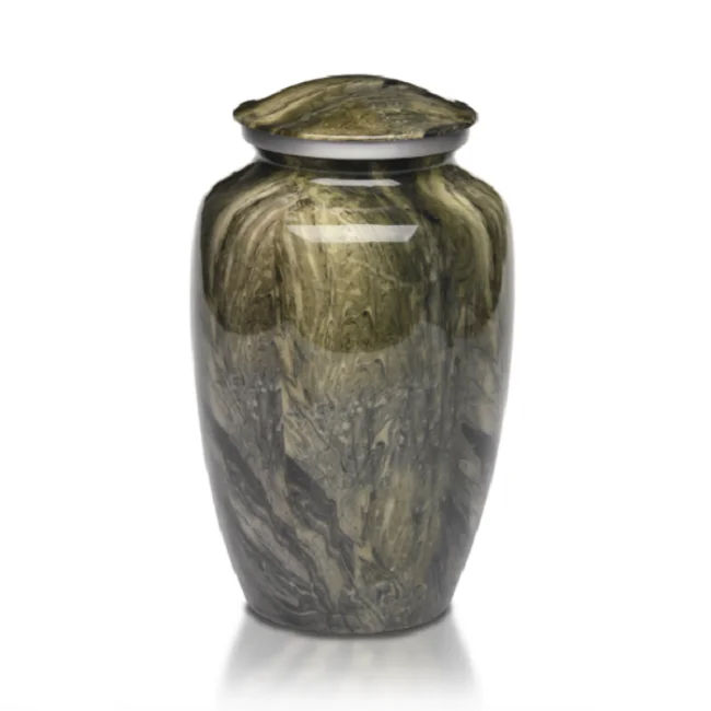 The Dark Gray with Silver Paw Prints Medium Pet Urn is an extra small, round brass pet urn which features a trail of metallic silver paw prints on a glossy gray background. The Dark Gray with Silver Paw Prints Medium Pet Urn can help honor the memory of your loved pet.
