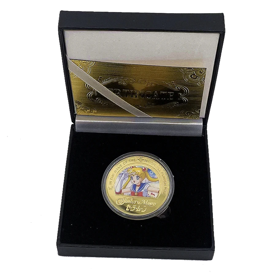 5 типов золотых монет Сейлор Мун в коробке, аниме монеты Naoko Takeuchi для хорошего подарка, золотая монета для красивой девушки для коллекции сувениров