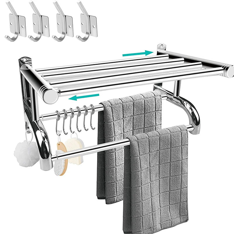 Вешалка для полотенец ванной комнаты регулируемая 15-26 4 дюймов двойная вешалка с двойным полюсом настенная из нержавеющей стали