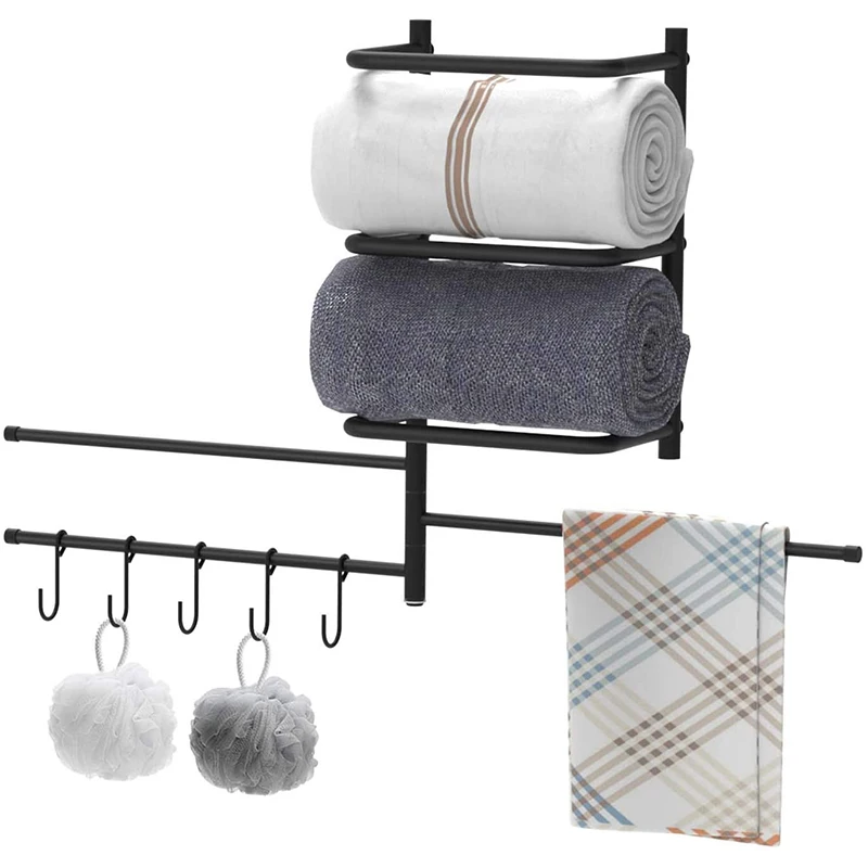 Вешалка для полотенец и стеллаж хранения настенный металлический вешалка в ванную комнату с 3 вращающимися ручками крючком форме 5