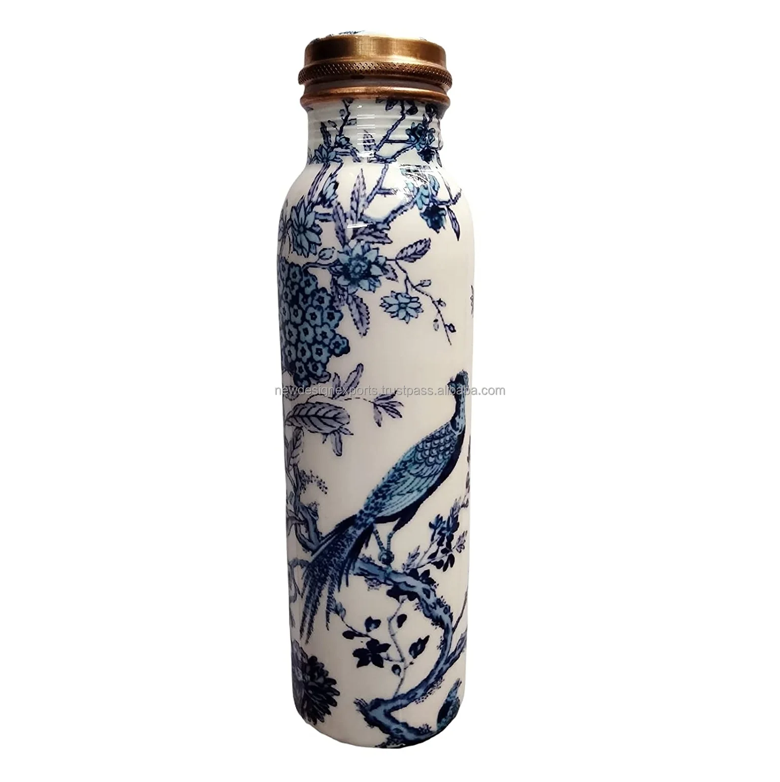 Бутылка для воды из чистой меди премиум-класса с принтом Meena офиса и Аюрведического пользования здоровья (1000 мл) дизайн павлина