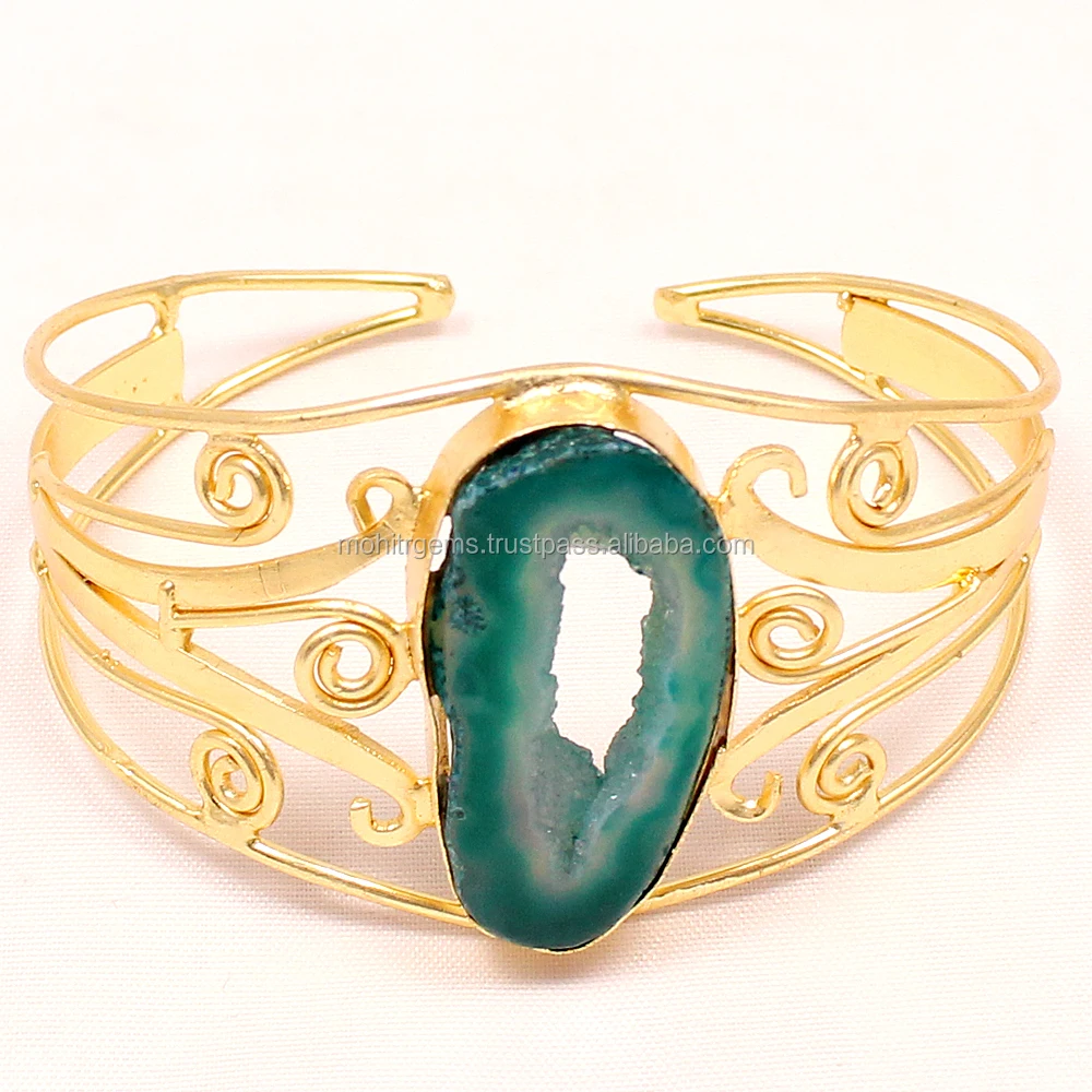 Модная металлическая манжета ручной работы с бирюзовым камнем